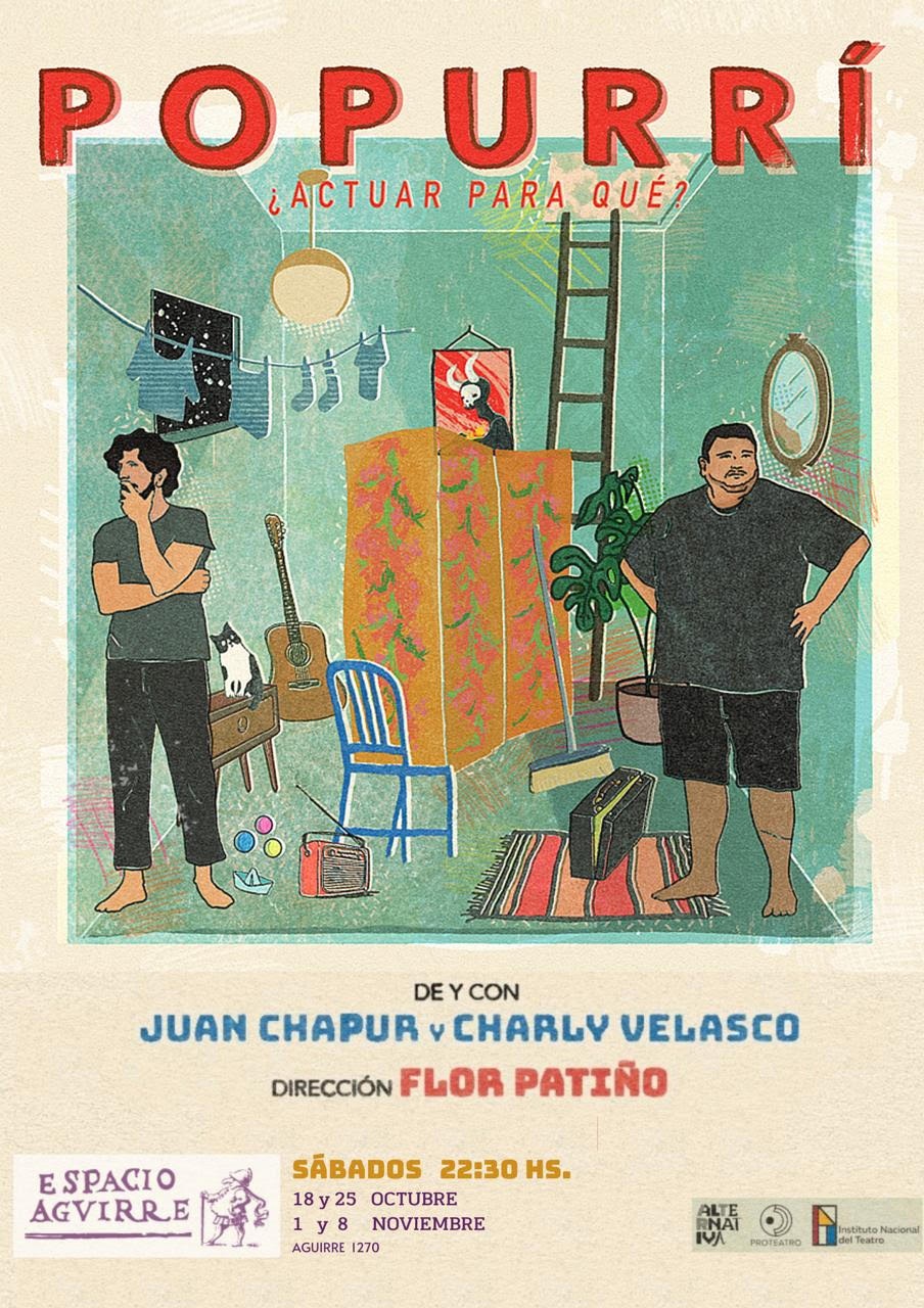 “Popurrí” se sumerge en diversas técnicas teatrales y estadíos emocionales de dos seres imperfectos intentando dar un salto en su carrera… y se pregunta “¿Actuar para qué?”