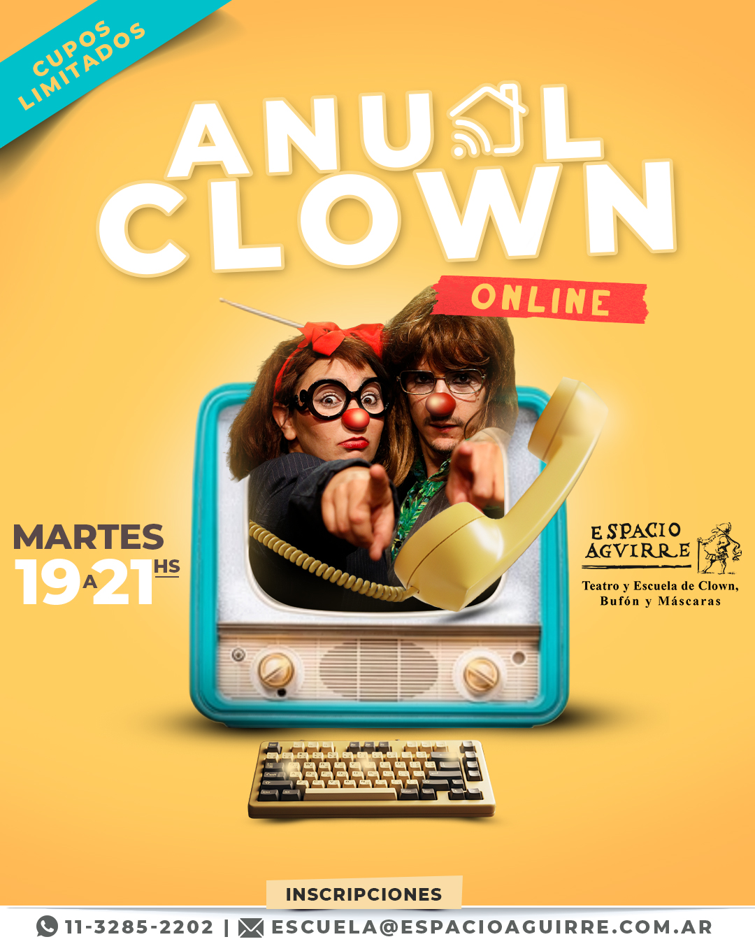 Abordamos el entrenamiento desarrollando diversos ejes que consideramos fundamentales, como ser: cuerpo, registro, péndulo (cómo tomamos lo que nos devuelve el público sobre lo que hacemos), impulsos, mirada, delirio, juego, estados emocionales, conexión con otrxs, etc., siempre desde la práctica. Con momentos de juego, calentamiento escénico y escena propiamente dicha.